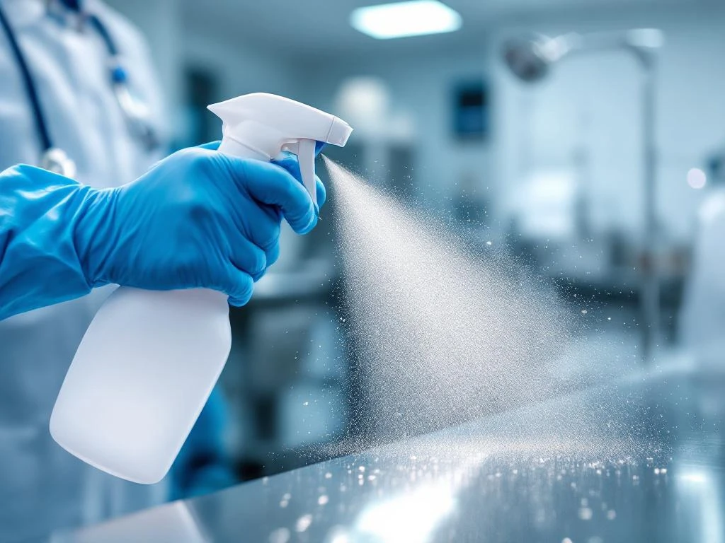 Chemische desinfectie is de meest toegepaste methode in zorginstellingen. Alcoholgebaseerde middelen (met 70-80% ethanol of isopropanol) werken snel en breed tegen bacteriën, virussen en schimmels. Ze zijn ideaal voor handdesinfectie en kleine oppervlakken. Chloorverbindingen zoals natriumhypochloriet zijn krachtig tegen sporevormende bacteriën en worden gebruikt bij uitbraken of in hoogrisicozones. Quaternaire ammoniumverbindingen (quats) zijn milder, minder corrosief en geschikt voor dagelijks gebruik op grotere oppervlakken zoals vloeren en meubilair.